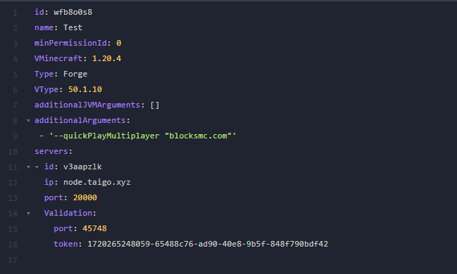 ⚠️ В вашем файле могут быть дополнительные параметры, которых нет в этом примере. Все отсутствующие параметры настроены в соответствии с документацией к вашему лаунчеру. Все соответствующие параметры настроены в соответствии с этой документацией